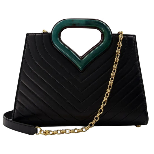 Casablanca Plaque Leather Tote Green Detail Black Bag
