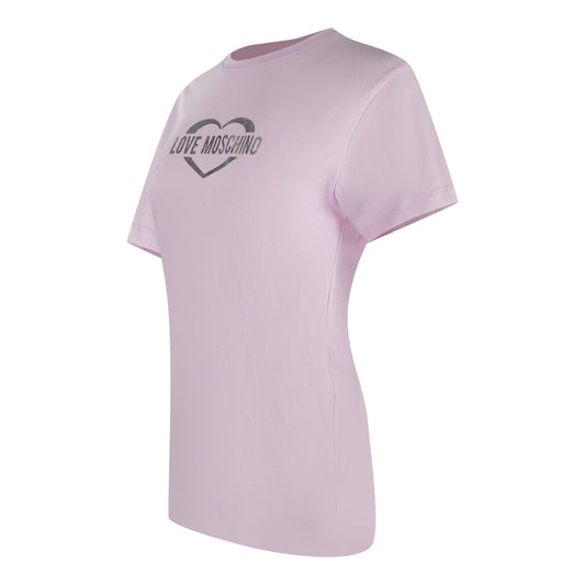 Love Moschino Shiny Heart Logo Pink T-Shirt