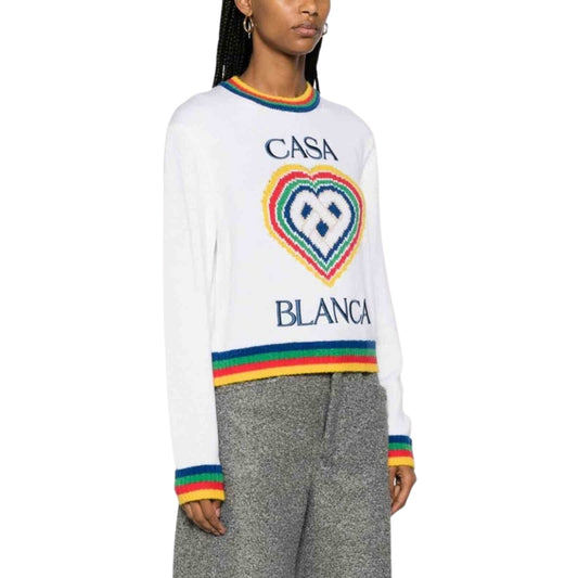 Casablanca Heart Casa Brand Jumper White Knitwear