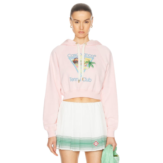 Casablanca Printed Cropped Hoodie Afro Cubism Tennis Club Pale Pink Hoodies