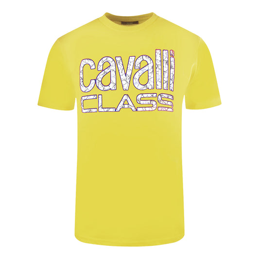 Cavalli Class Bold Floral Logo Yellow T-Shirt