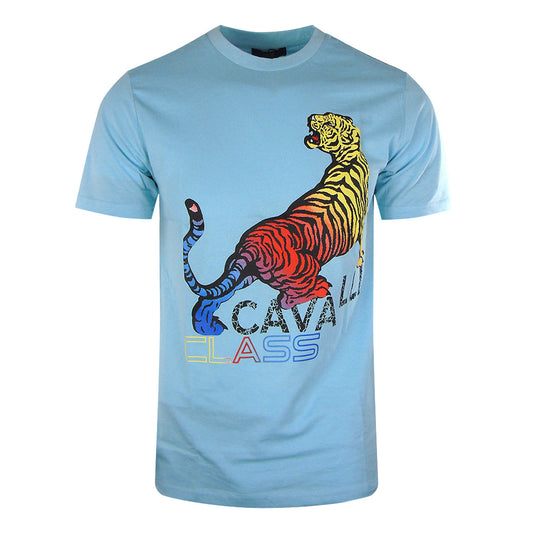 Cavalli Class Bold Tiger Design Light Blue T Shirt