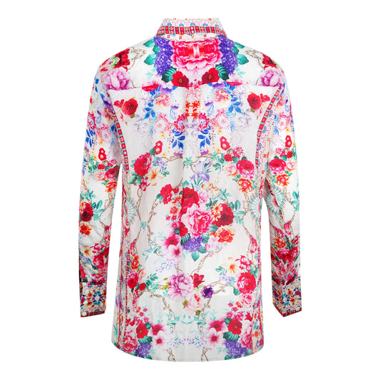 Inoa Rosetto Gardenia White Floral Long Sleeve Blouse Silk Shirt