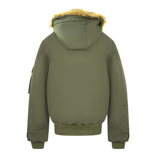 Diesel W-Jame-21 Faux Fur Trimmed Green Bomber Jacket