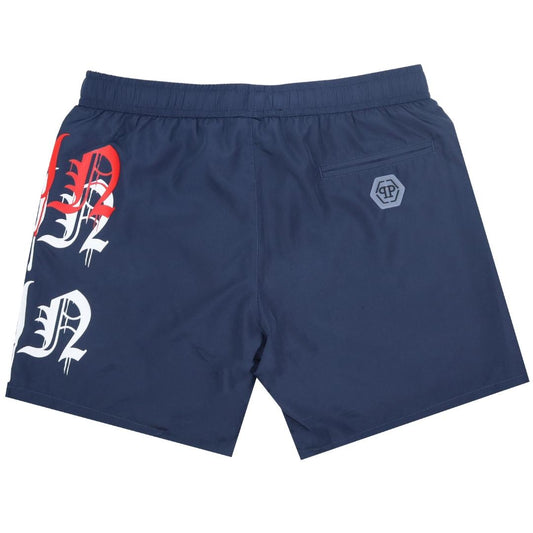 Philipp Plein Melting Logos Navy Blue Swim Shorts