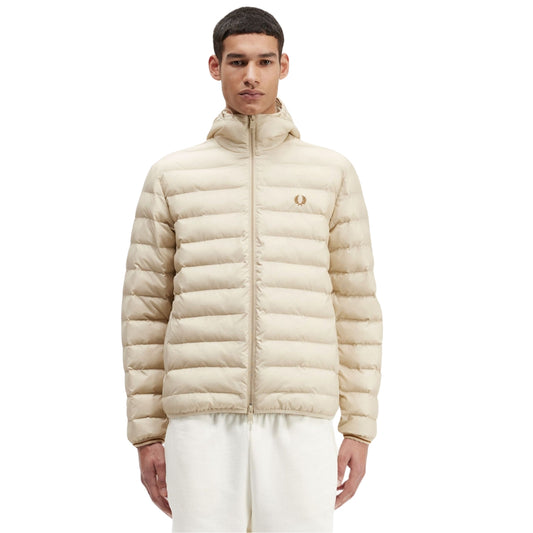 Fred Perry Oatmeal Beige Hooded Insulated Jacket