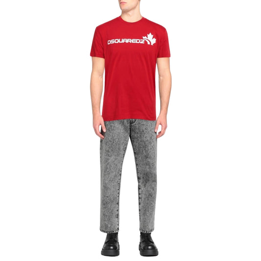 Dsquared2 White Maple Leaf Logo Cool Fit RedT-Shirt