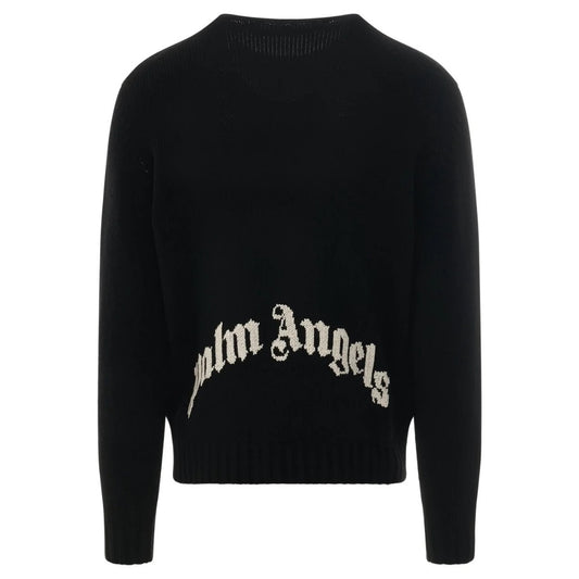 Palm Angels Curved Logo Black Knitted Jumper