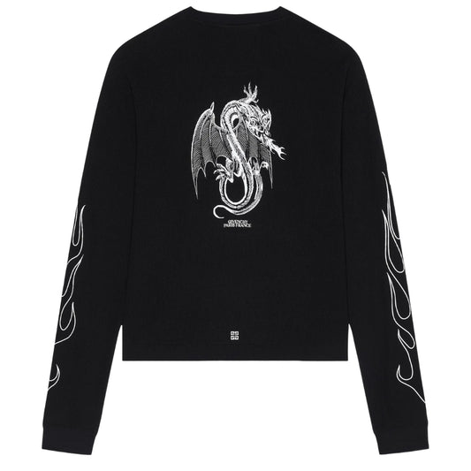 Givenchy Dragon Flames Design Boxy Fit Black Long Sleeve T-Shirt