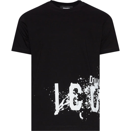 Dsquared2 Cool Fit Large Icon Paint Splatter Logo Black T-Shirt