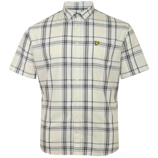 Lyle & Scott Linen Check Short Sleeve Chalk Shirt
