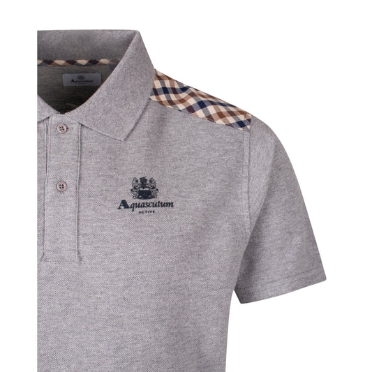 Aquascutum Active Stripes Piquet Polo Light Melange Grey Polo Shirt