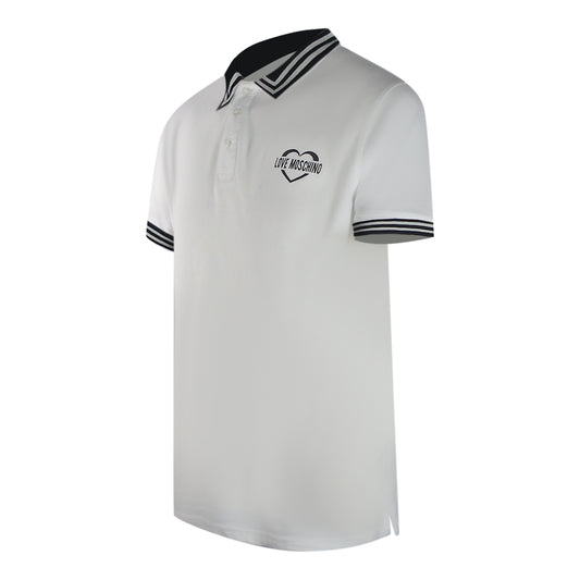 Love Moschino Twin Tipped Collar Love Logo White Polo Shirt