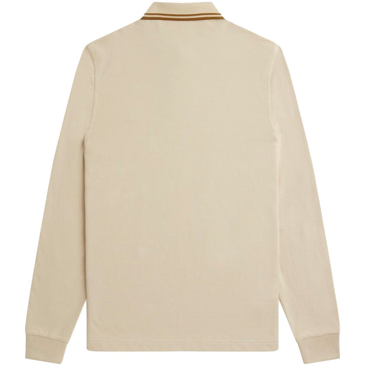 Fred Perry Long Sleeve Twin Tipped Oatmeal Beige Polo Shirt