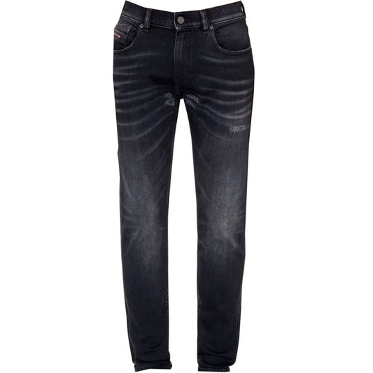 Diesel D-Strukt Black Destroyed Reinforced Denim Jeans