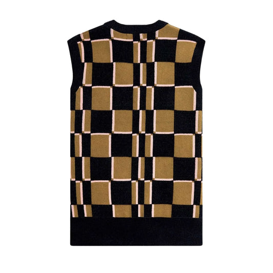 Fred Perry Navy Glitch Chequerboard Shaded Stone Knitted Tank