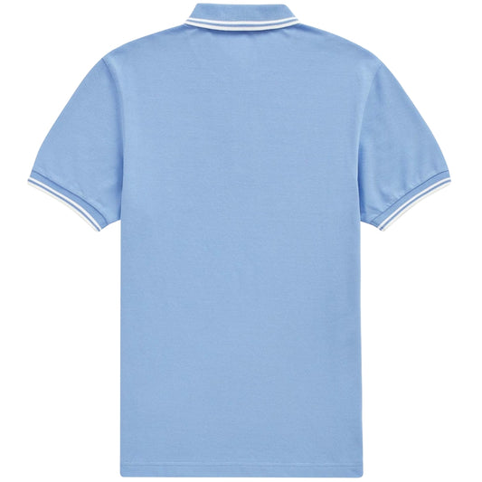 Fred Perry White Knit Rib Collar Sky Blue Polo Shirt