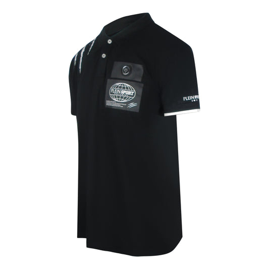 Plein Sport Scratched Shoulder Black Polo Shirt