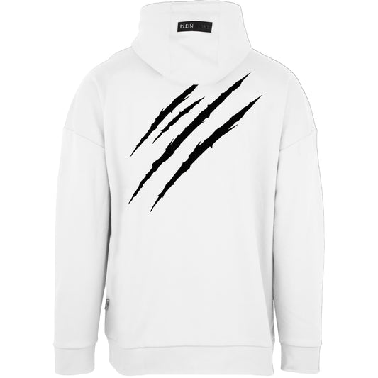 Plein Sport Large Scratch Logo Taped Hood White Hoodie