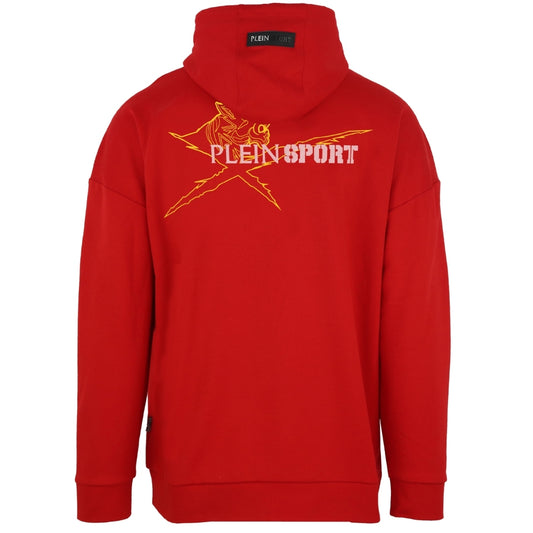 Plein Sport Large Scratch Logo Taped Hood Red Hoodie