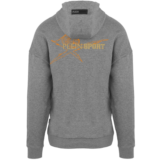 Plein Sport Large Circle Logo On Back Taped Hood Grey Hoodie