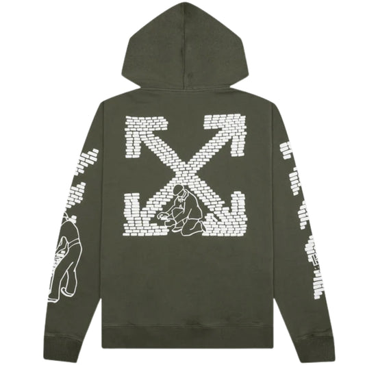 Off-White Bricks Design Slim Fit Army Green Hoodie