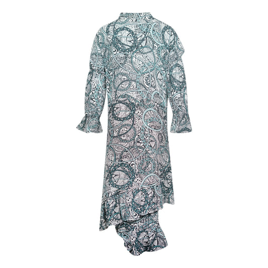 Inoa Jafari 120211 Green Long Sleeve Silk Uneven Hem Ruffle Dress
