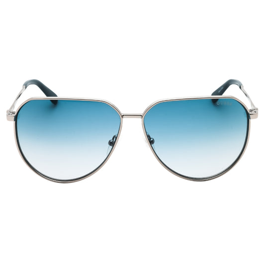 Guess Shiny Gunmetal Grey Gradient Blue Lensed Sunglasses