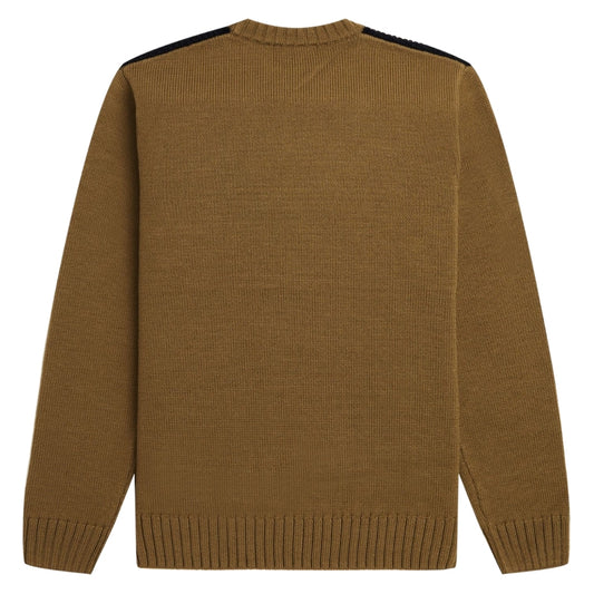 Fred Perry Textured Panel Shaded Stone Brown Sweater