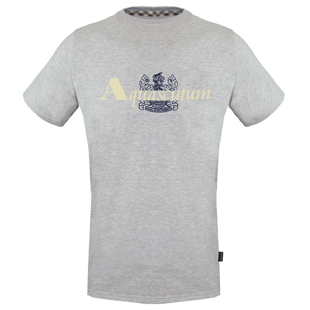 Aquascutum Brand Aldis Logo Grey T-Shirt. Aquascutum Brand Aldis Logo Grey Tee. Crew Neck T-Shirt, Short Sleeves. Stretch Fit 95% Cotton 5% Elastane. Regular Fit, Fits True To Size. Style TSIA12 94