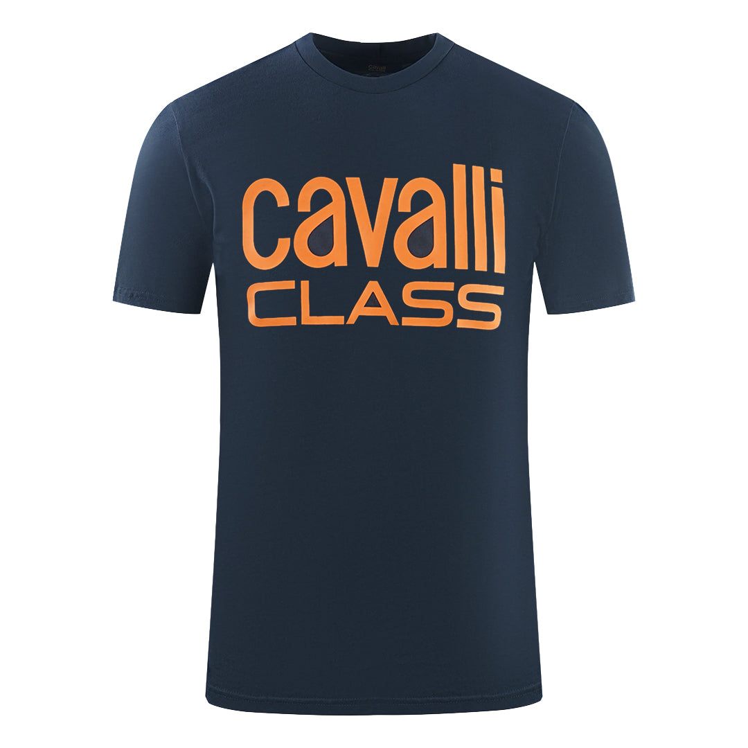 Cavalli Class Bold Orange Logo Navy Blue T-Shirt