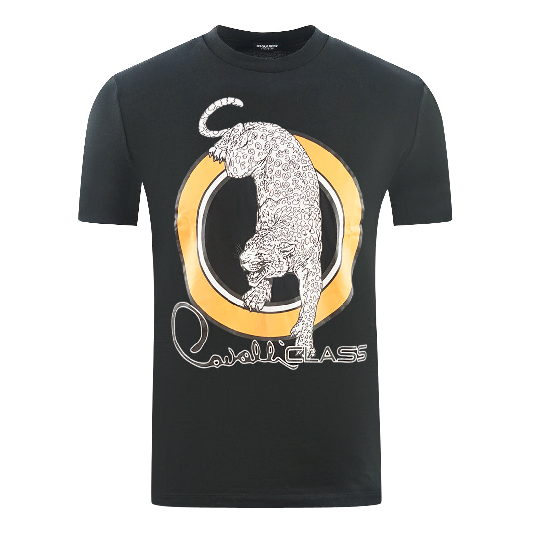 Cavalli Class Circular Leopard Logo Black T-Shirt