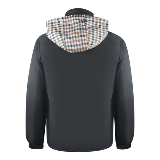 Aquascutum Plain Black Hide Hood Lightweight Jacket
