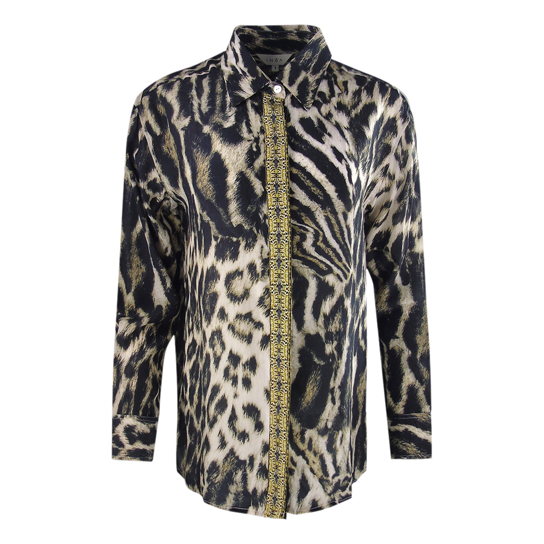 Inoa Fashion Siberia/1927 Brown Animal Print Collar Shirt Womens