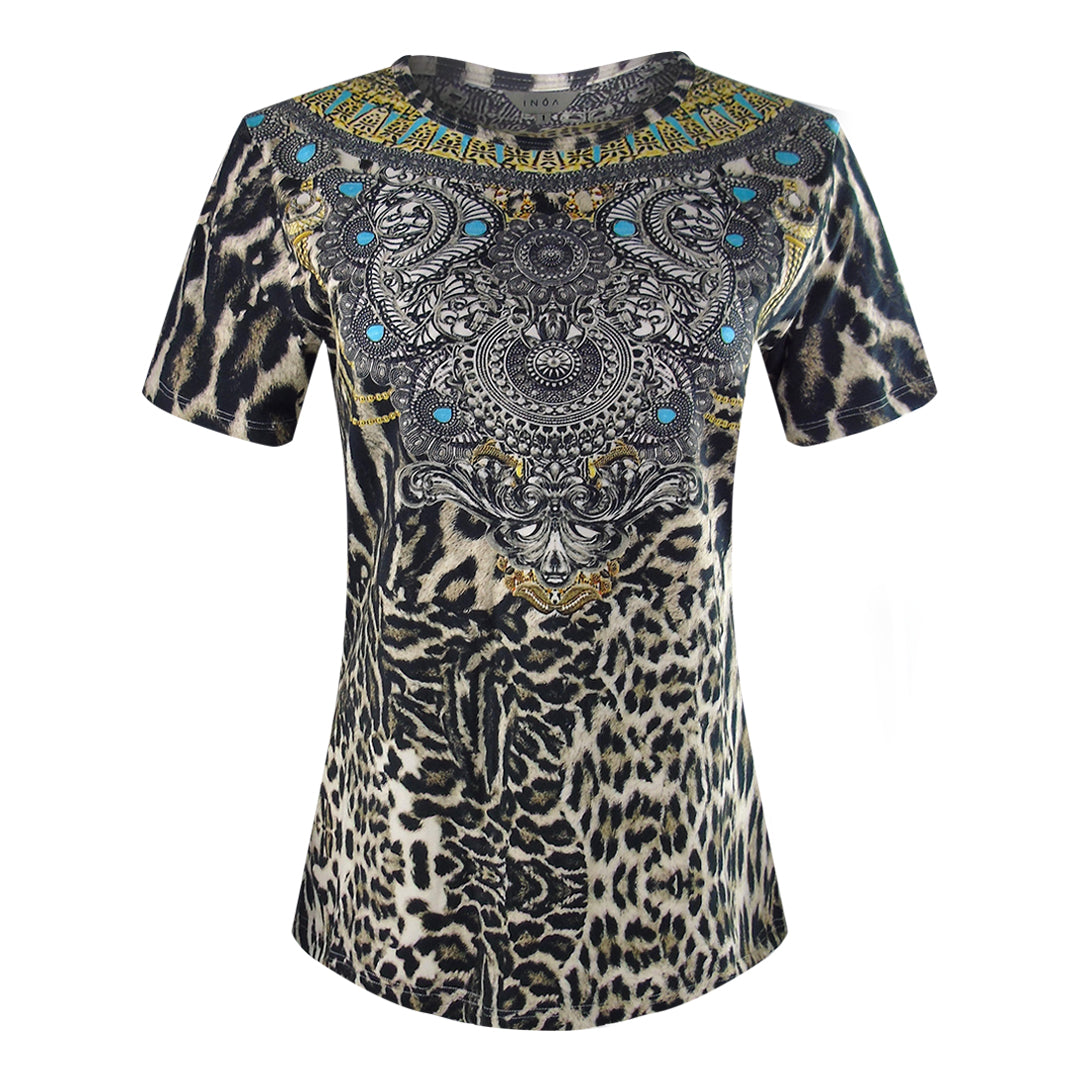 Inoa Fashion Siberia/1927 Brown Animal Print T-Shirt Womens