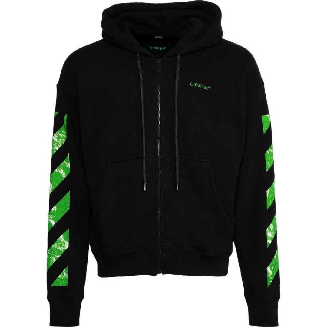 Off-White Moon Camera Design Skate Fit Black Zip-Up Hoodie. Stay warm and stylish with this Off-White Skater Hoodie. Featuring an iconic Moon Design on the Back, this hoodie is sure to be a conversation starter. Show off your unique style!. Off-White Logo, Off-White Black Hoodie, Regular Fit, Streetwear. 100% Cotton, Long Sleeve, Elasticated Waist and Sleeve Endings, Regular Fit, Zip Closure. Drawstring Adjustable Hood, Large Front Kangaroo Pocket, Made In Portugal, Black Zip Up Hoodie. Style Code: OMBE015F23FLE0021050